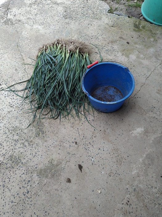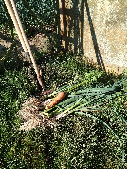 N'ayant plus de place dans mon potager, arrachage de poireaux à repiquer pour un ami ce matin