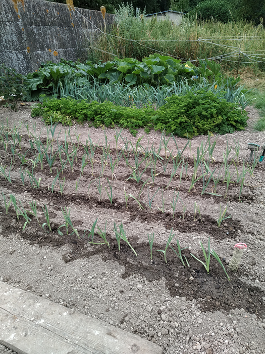 Hier repiquage poireaux (tristes poireaux semi-pépinière mauvais endroit) .