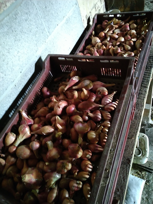 Dernier repiquage de poireaux , est mise en caisse des échalotes