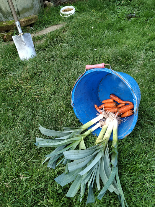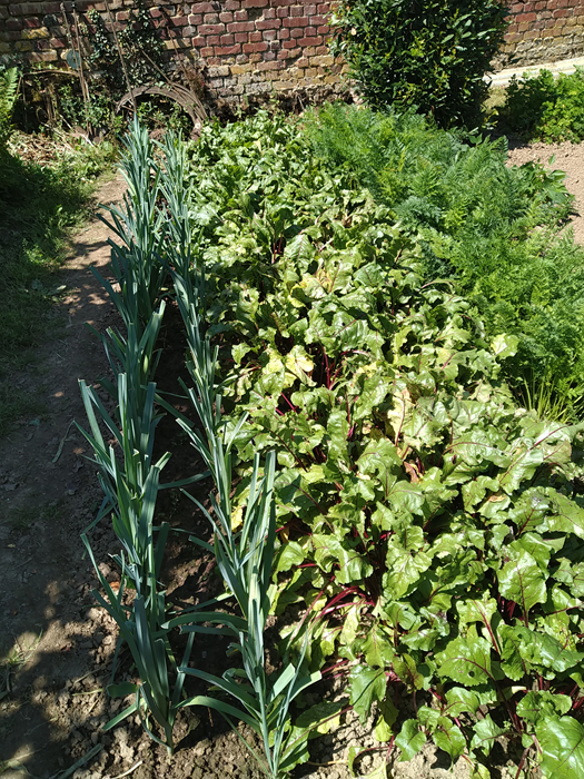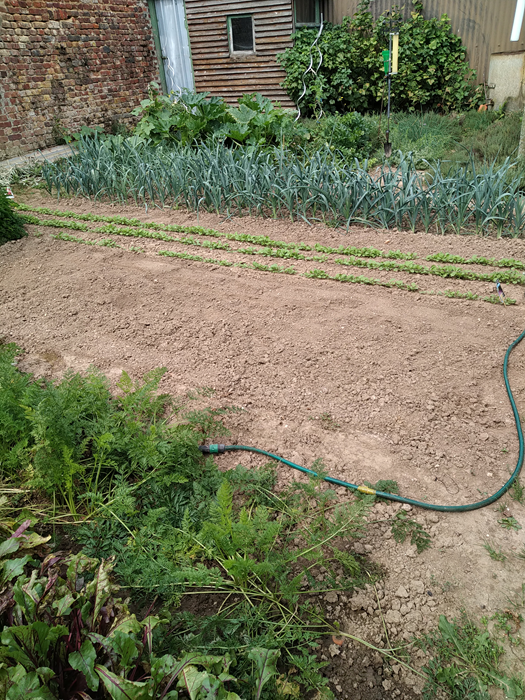 Ce jour arrachage vieux navets , bêchage entre les routes de carottes et panais et quelque petit arrosage