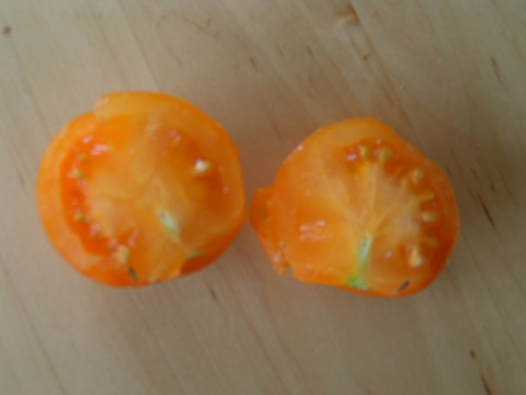 Ca y est, j'ai pu déguster mes premières Ida Gold!!! 3 normales et 3 petites, normal, le plant est couvert de fruits (une quarantaine) et je crains que de ce fait ils ne parviennent pas tous à leur taille normale...
