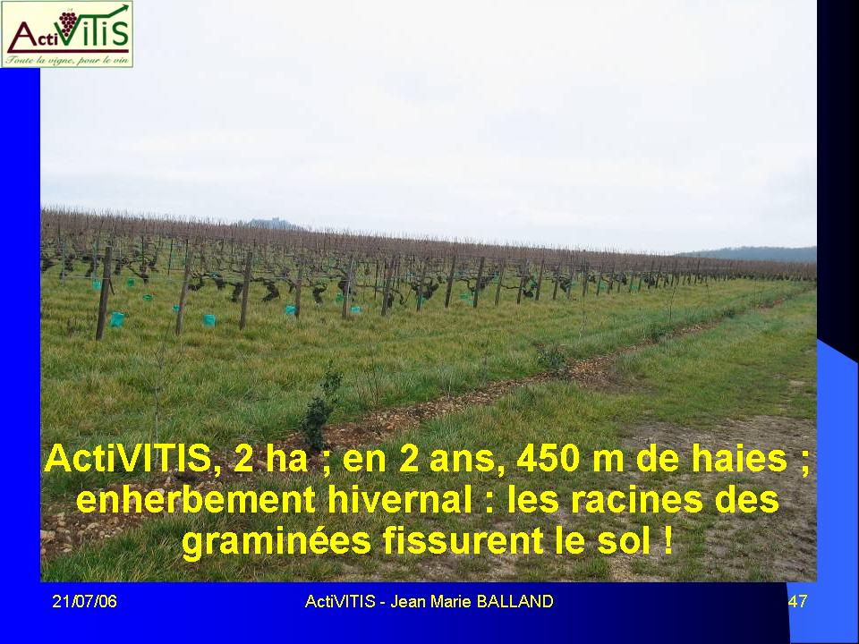 - ensuite, l'herbe regagne l'espace perdu ; elle fissure le sol pendant que la vigne se repose