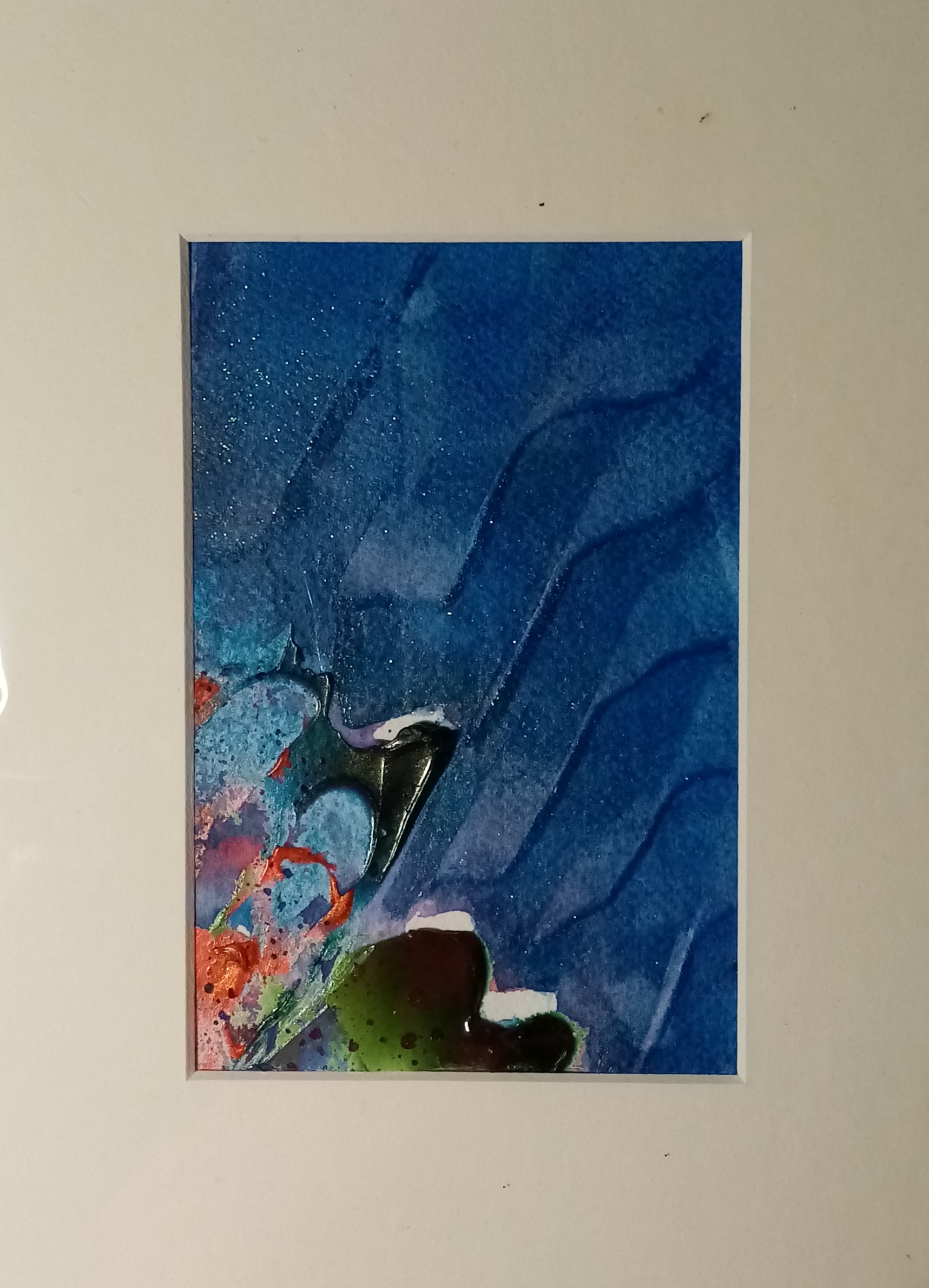Gels durcisseurs passés au couteau à peindre plus un lavis d'aquarelle au format 10 X 14,5 cm.