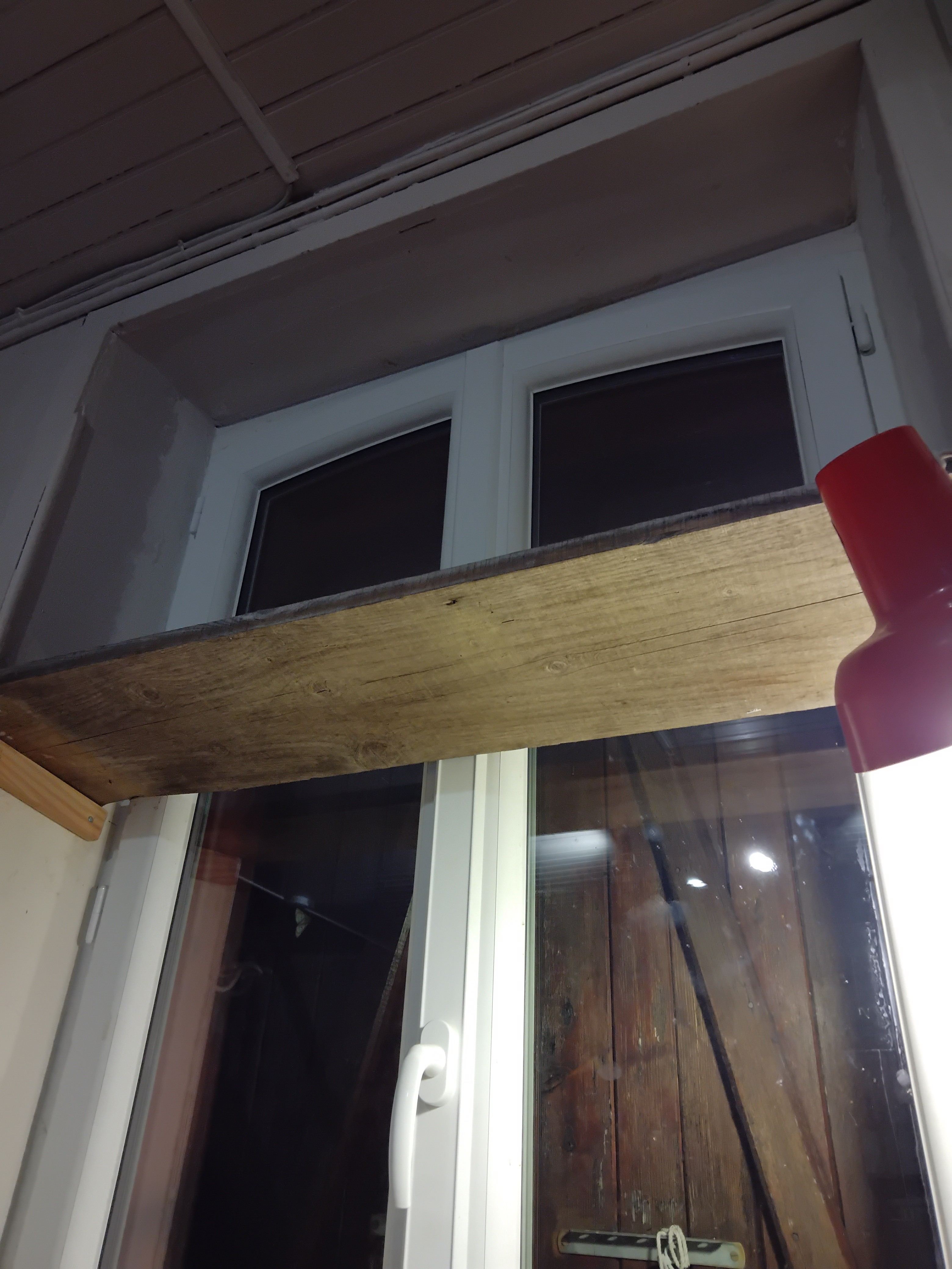 - j'ai créé une petite étagère escamotable pour mettre les plants d'aubergines à la fenêtre. (Pour l'instant, ils sont dans la salle de bain qui est trop fraîche, et ça ne pousse pas, j'ai peur que les moucherons gagnent la course....). Rien de bien compliqué, tout juste à ma portée....