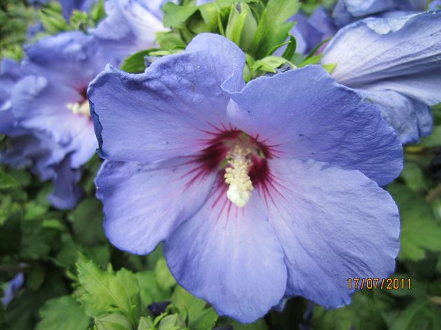 Bien Mamiris pas encore couchée. Zut j'ai pas vu la campanule mais un perovskia. Tu as l'hibiscus chiffon, j'en ai eu acheté un chez a...i mais il n'a pas résister ici.