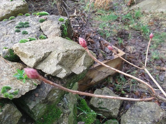 Nous sommes allés faire notre petit tour de jardin, certains boutons du daphné sont ouverts et le mimosa prend une couleur jaune... Nous allons supprimer la haie qui jouxte ces massifs pour mettre contre le mur de clôture des plantes à feuilles persistantes et plus décoratives...