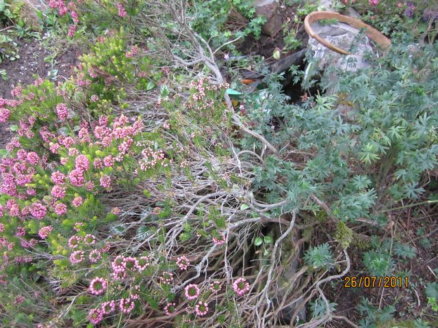 1ère question :Qui peut me dire si la bruyère vieille de 35 ans devant OBLIGATOIREMENT être retirée peut reprendre ensuite ? merci de vos conseils pour la SAUVER . 2ème question :L'arbre de droite risque de sauter aussi pourrait-on s'il est déraciné le replanter soit ailleurs soit déplacé légèrement ou sera-t-il fichu ? lui aussi est âgé !!