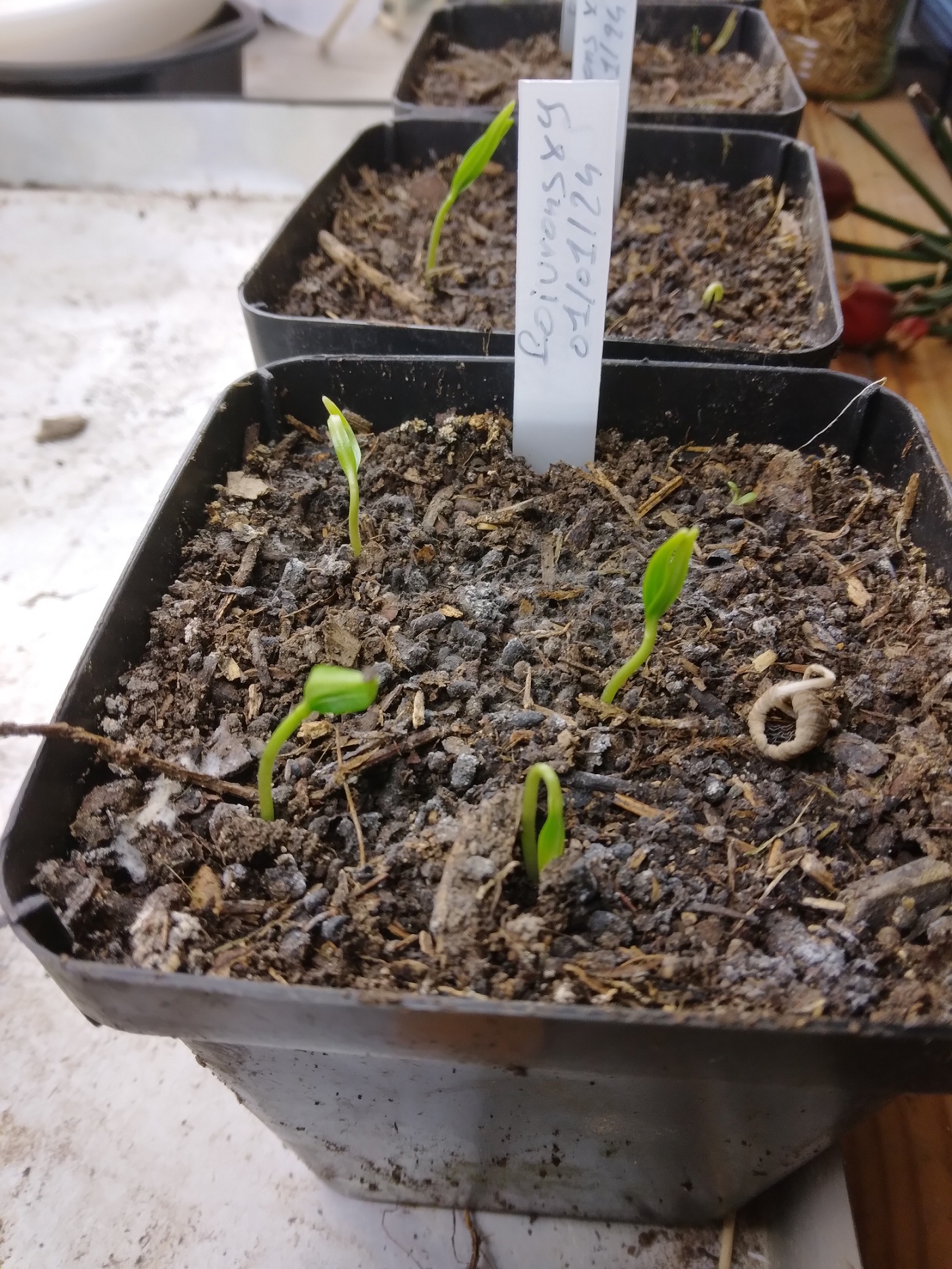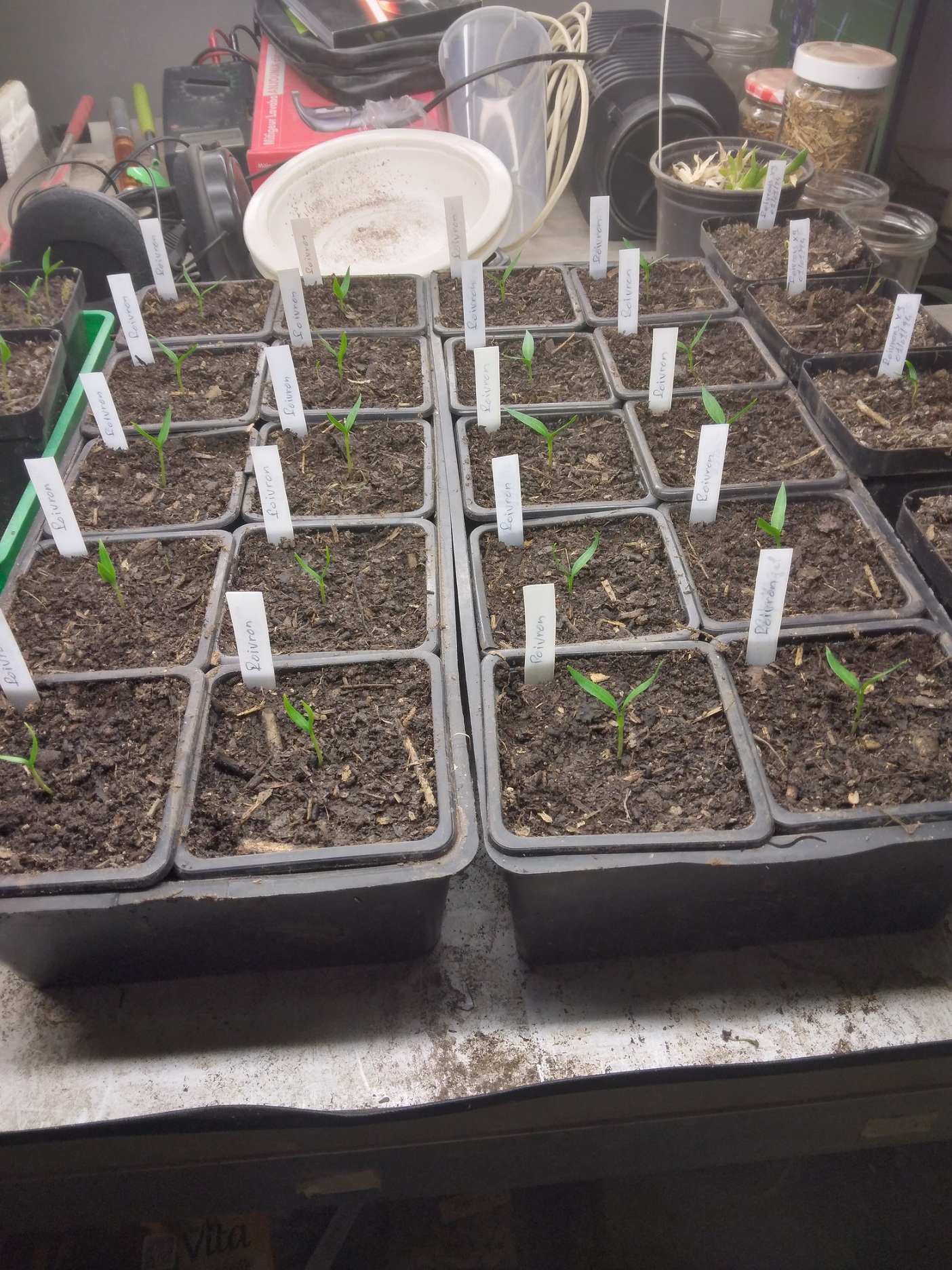 J'ai commencé mes semis de poivrons et piments dans du composte.