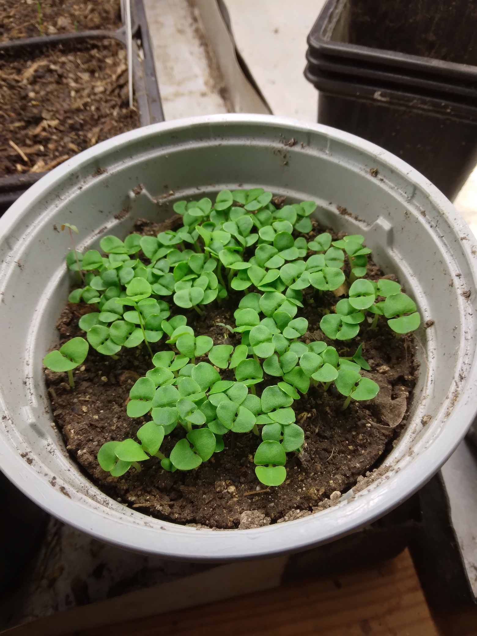 Au jardin, un semis de radis commence à lever.