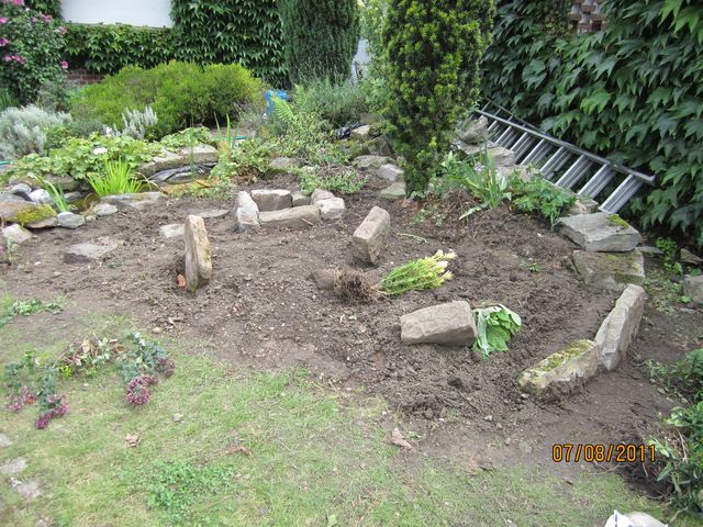Je vais peaufiner la " rocaille je l'ai encore améliorée !. Puis nous attaquerons la reconstruction de l'abri à poubelles , réserve dépannage à bois.