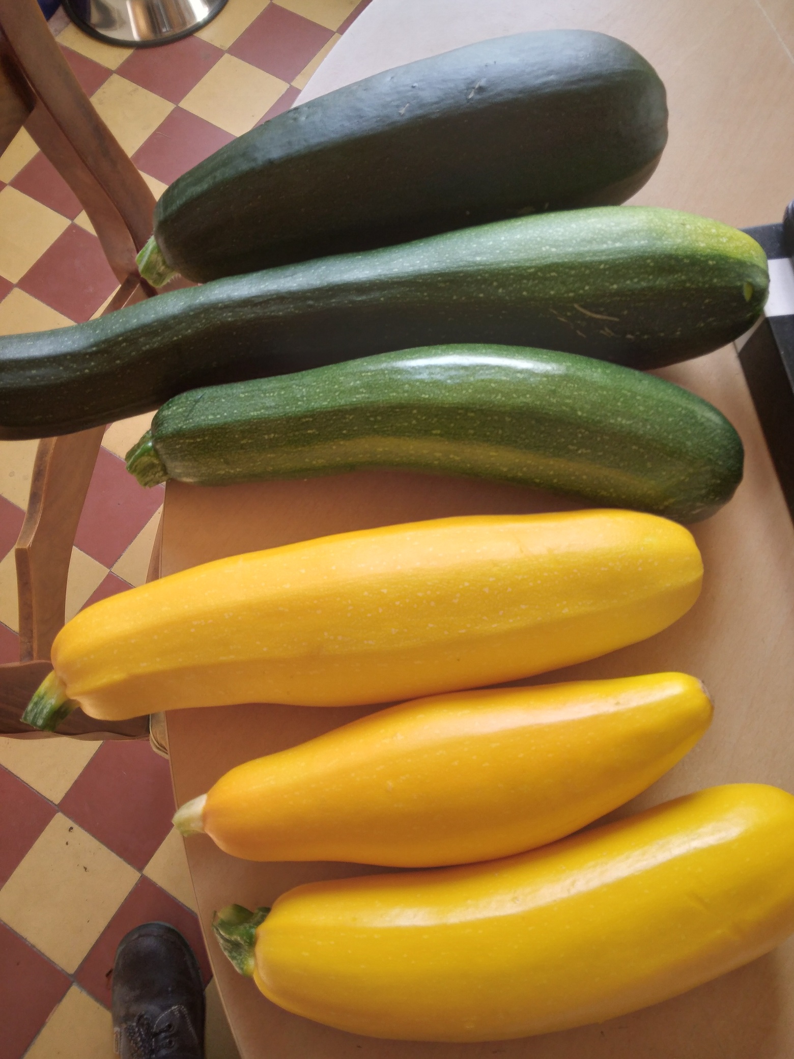 Encore des courgettes. Les tomates arrivent mais elles sont encore vertes pour l'instant.