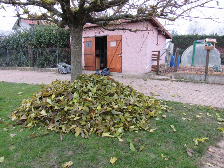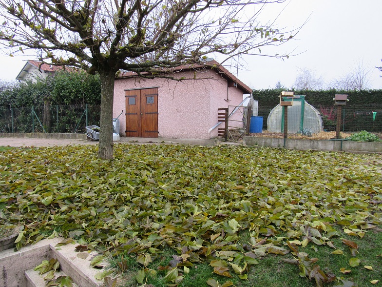 Les feuilles du murier platane sont ramassées :veryhappy:. Maintenant il va falloir que je réfléchisse à leur sort :|. Soit elles finissent au compost, soit elle recouvrent la planche d'épinards d'hiver qui ne donnera rien à manger.