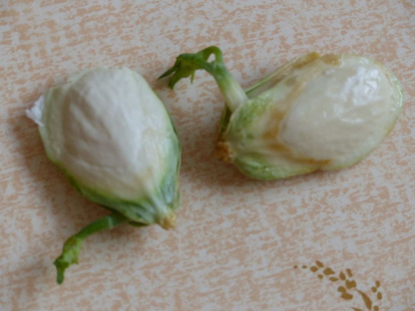 Ainsi, les premières fleurs apparaissent fin Août, puis se forme une magnifique petite poire qui va atteindre très vite, en une 20aine de jours, sa taille adulte.>>