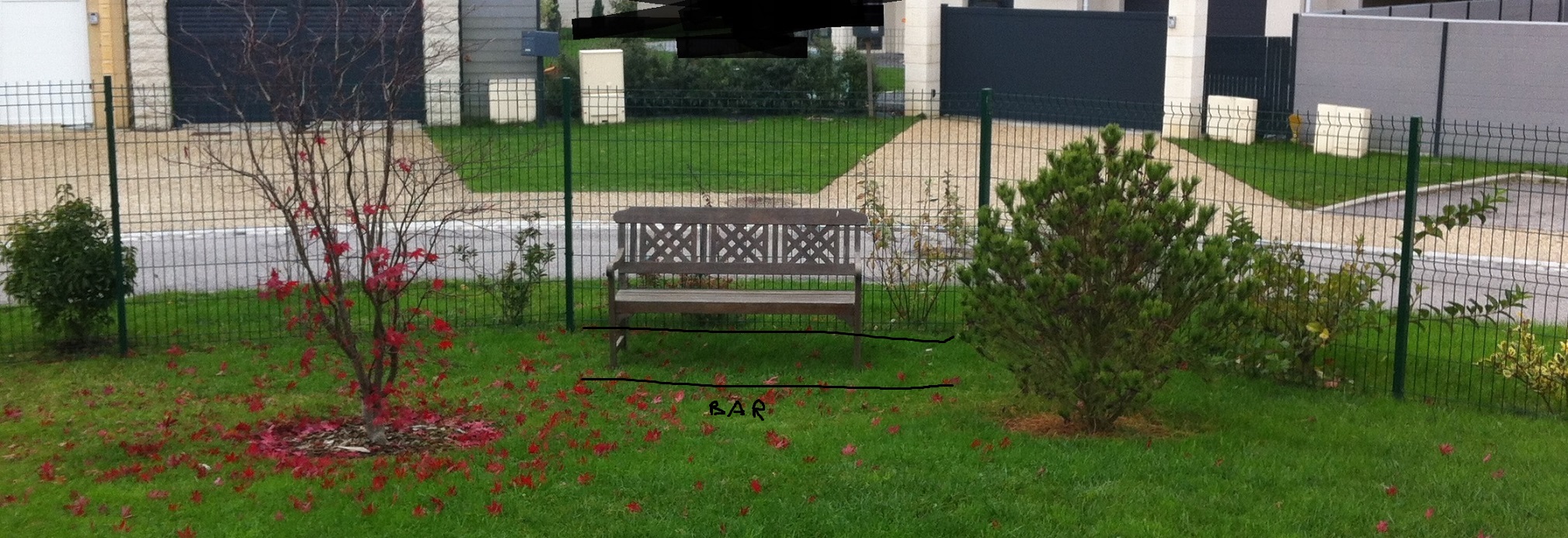 2) Des bambous entre le mur et l'allée, après les cyprès. Une BAR en U, courant le long du mur (à 50 cm), et ouverte côté allée, ferait-elle l'affaire pour éviter absolument les intrusions chez les voisins de l'immeuble ? (BAR 2)