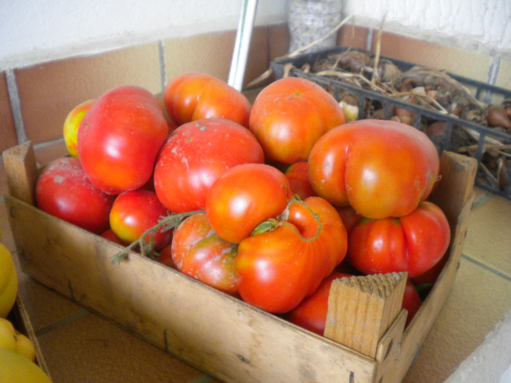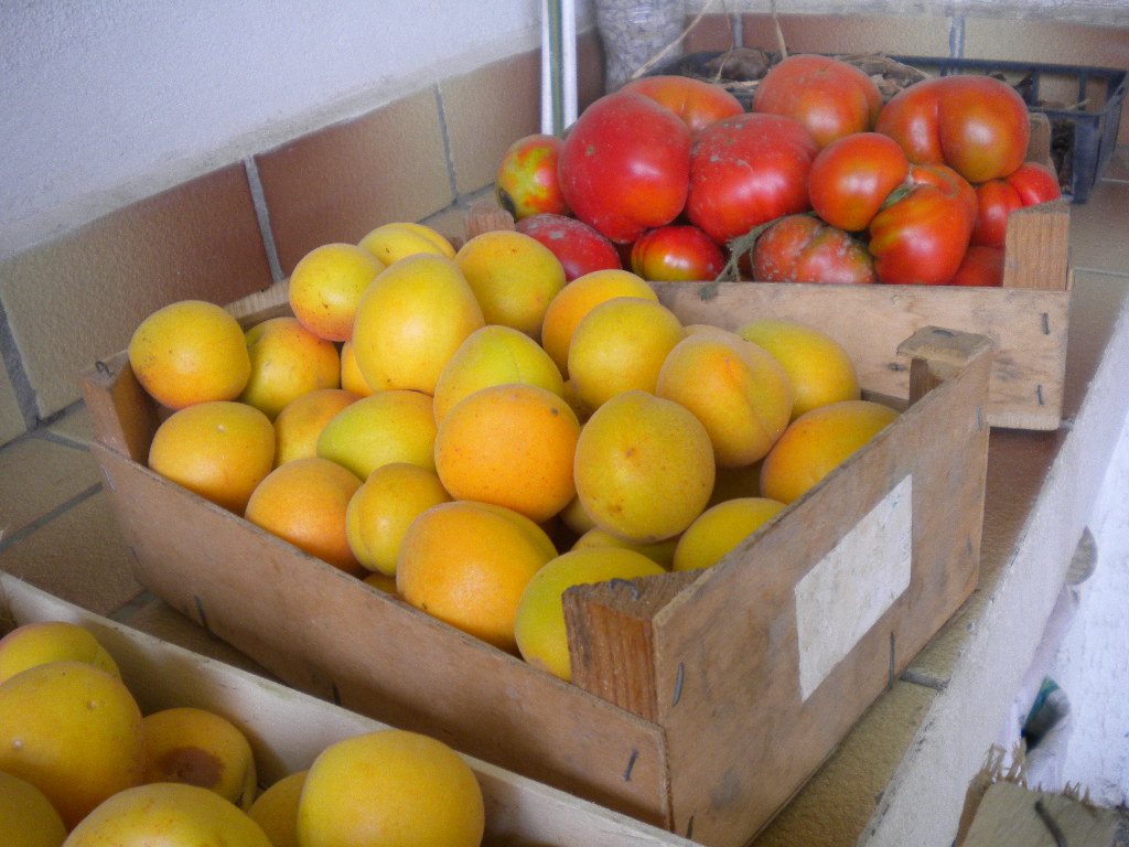 magnifiques les abricots et les tomates , quels beaux fruits :love: et quand je pense que tu dis que ton jardin ne vaut rien , tu me fais penser à ma maman qui avait de l'or dans les mains pour jardiner et sortait de n'importe quelle terre des récoltes opulentes pour nous nourrir , nous les marmots ; comme elle a travaillé et s'est éreintée sur cette terre , tu me la rappelles vraiment avec ton courage inébranlable