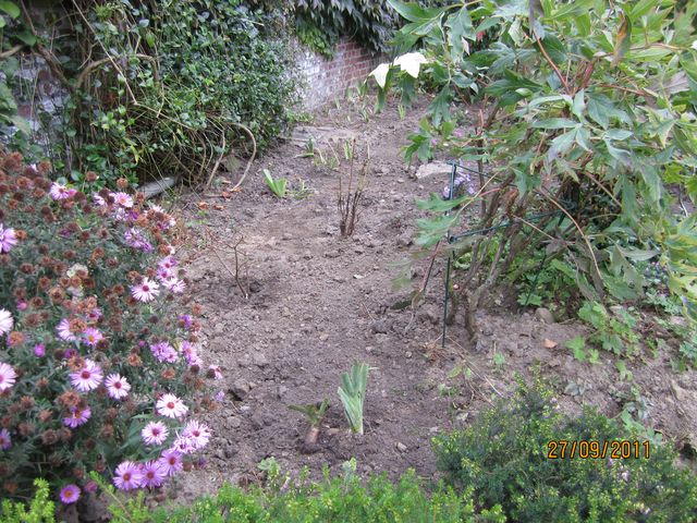 Pour ton massif c'est vrai que la terre nue nous plaît pas forcément, mais je pense qu'avec le temps tes iris vont s'installer et combler les manques. Je n'y ajouterai pour l'instant que des bisannuelles qui pour un moment meubleront les espaces vides, bientôt les pensées et primevères se trouveront sur les marchés et pourquoi ne pas remettre des bulbes pour le printemps.