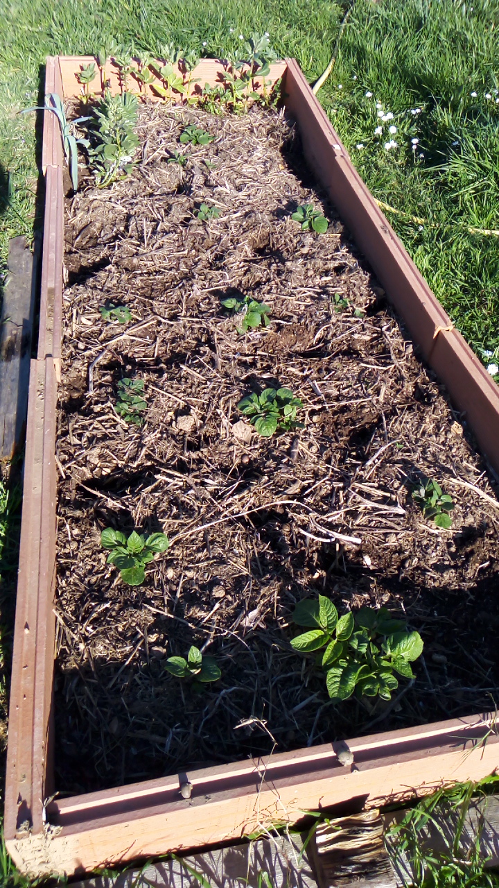 Le rectangle des pommes de terre Les fèves Les 3 épinards rescapés, c'est un truc que je ne réussis jamais... Les oignons au milieu des fraises et une patate spontanée La c'est le futur rectangle tomate qui aura aussi quelques patates, des salades, radis... Un mix. J'ai mis 4 pots enterrés avec l'idée de faire des sortes d'ollas Ensuite, pois gourmands, petits pois qui se développent bien Et enfin le rectangle de mon mari plus classique et rectiligne!