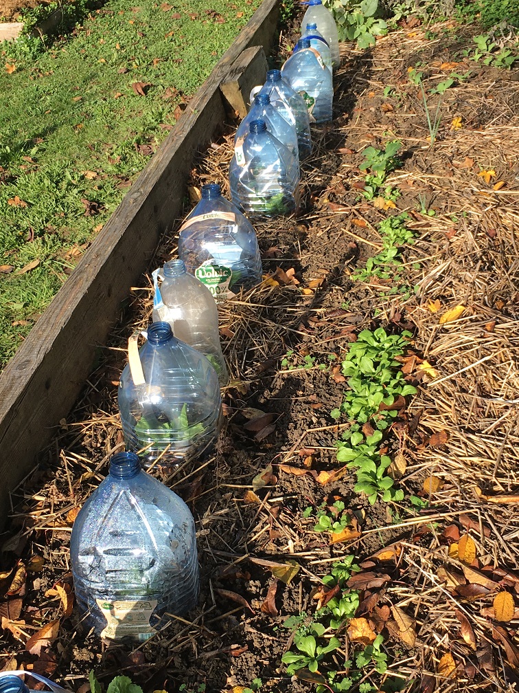 continué à repiquer la Mizuna entre les salades. protégé avec du Ferramol.
