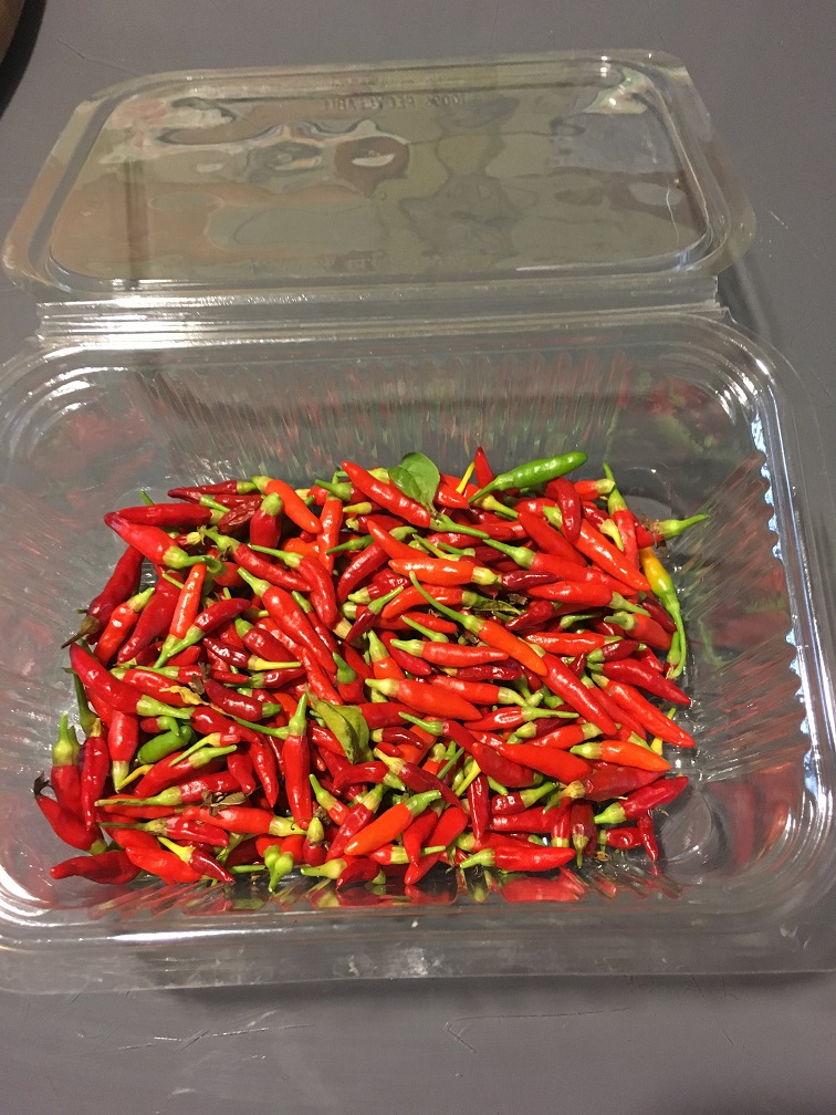 Pendant ce temps, j'ai cueilli mes piments avant de rentrer les pots...