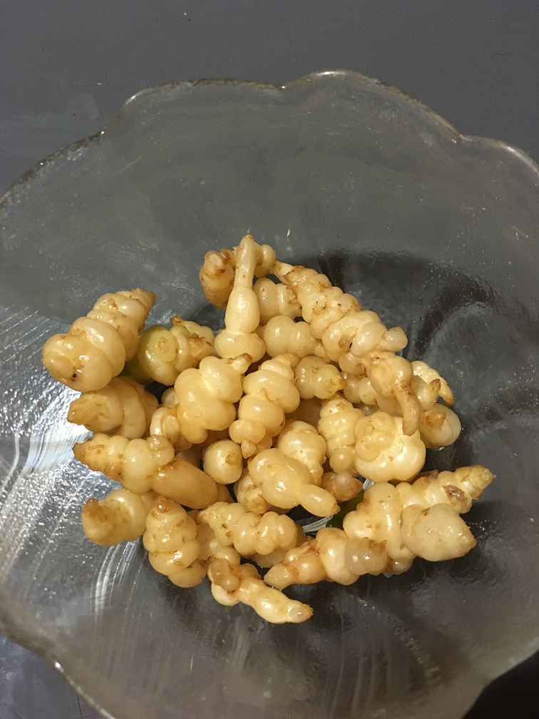 Arraché un pied de crosnes (les feuilles jaunissantes) Récupéré les plus gros et remis la motte en terre
