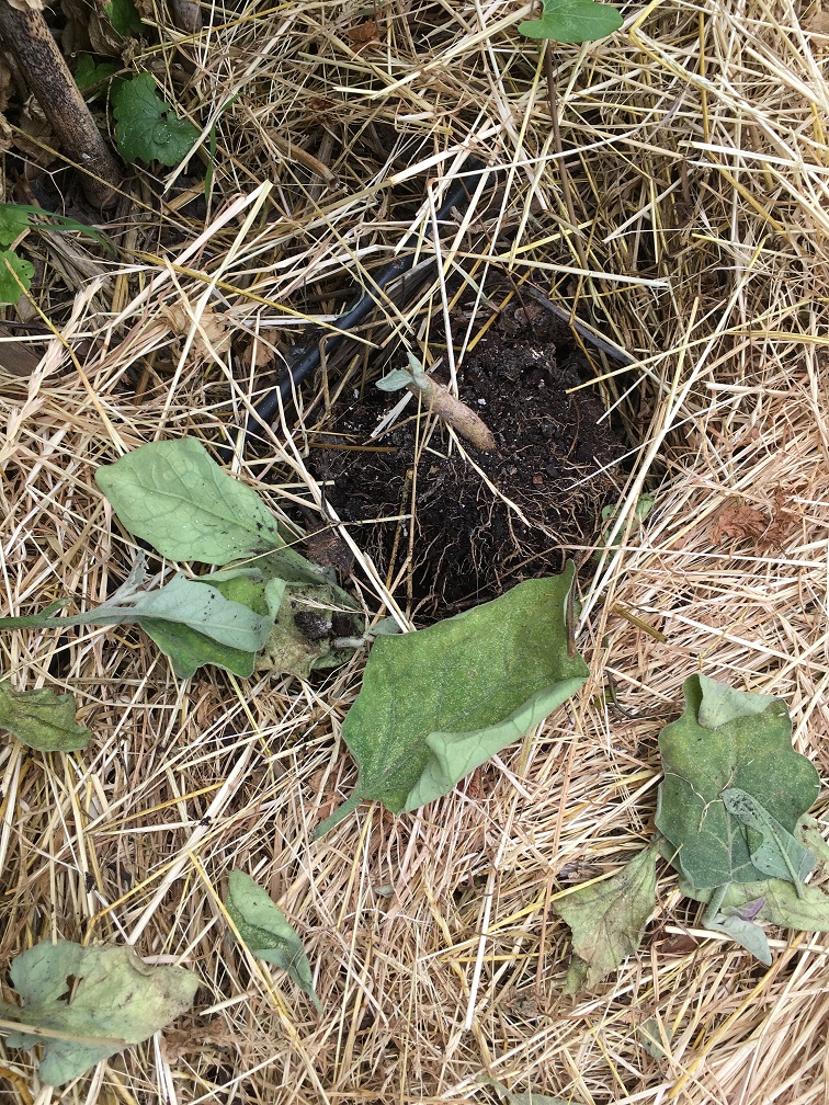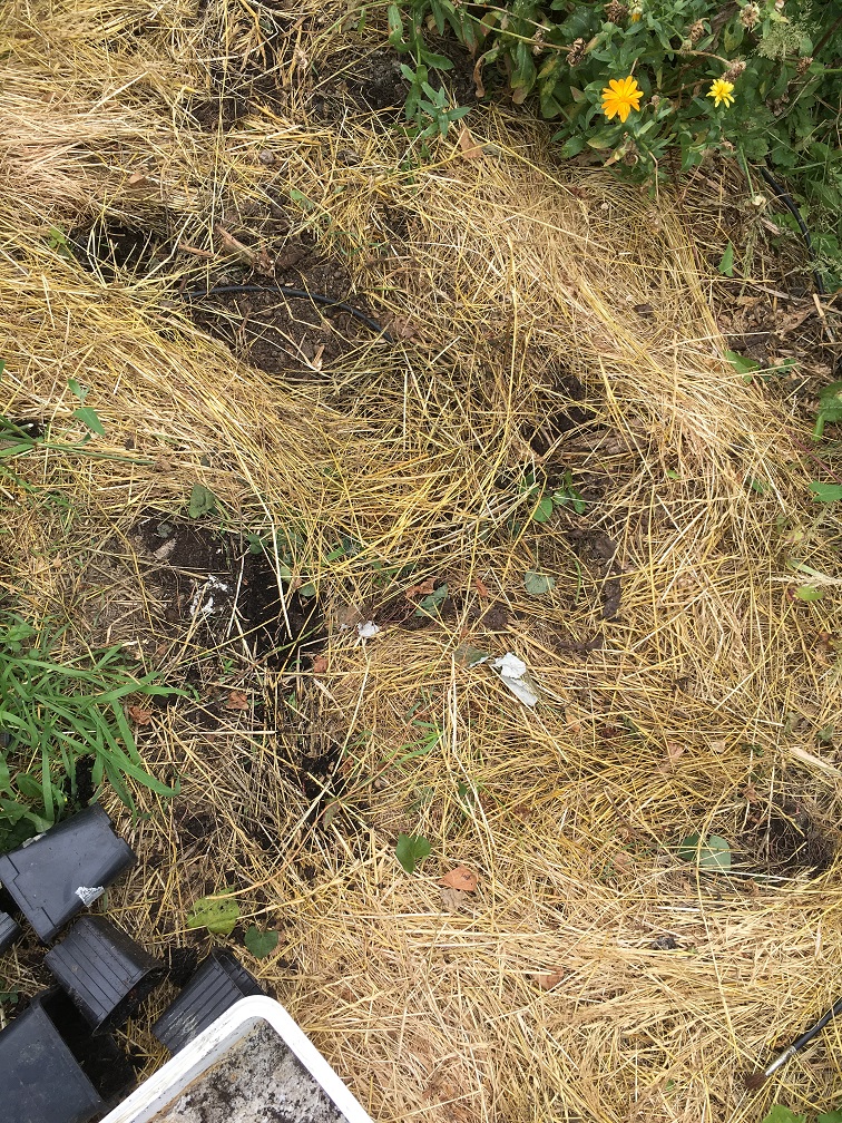 ça c'est l'emplacement des cinq plants de patates douces qui commençaient à être beaux. complètement arrachés !!