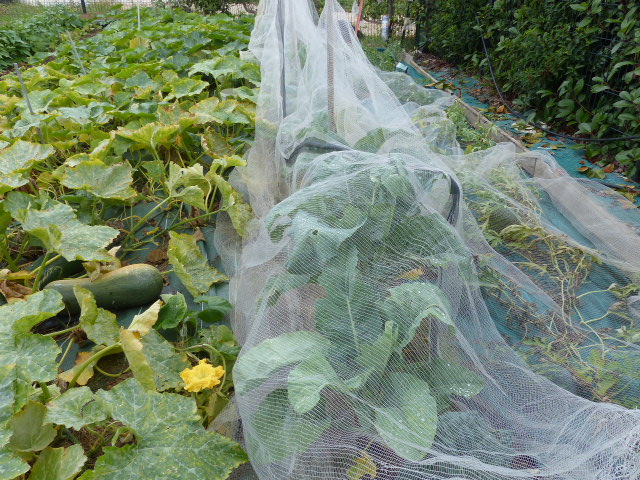 Je vois que tu poses les filets anti-insecte directement sur les choux, ça ne les écrase pas? et s'il y a du vent ça ne s'envole pas?