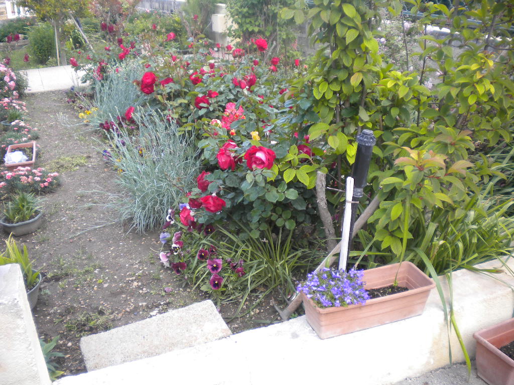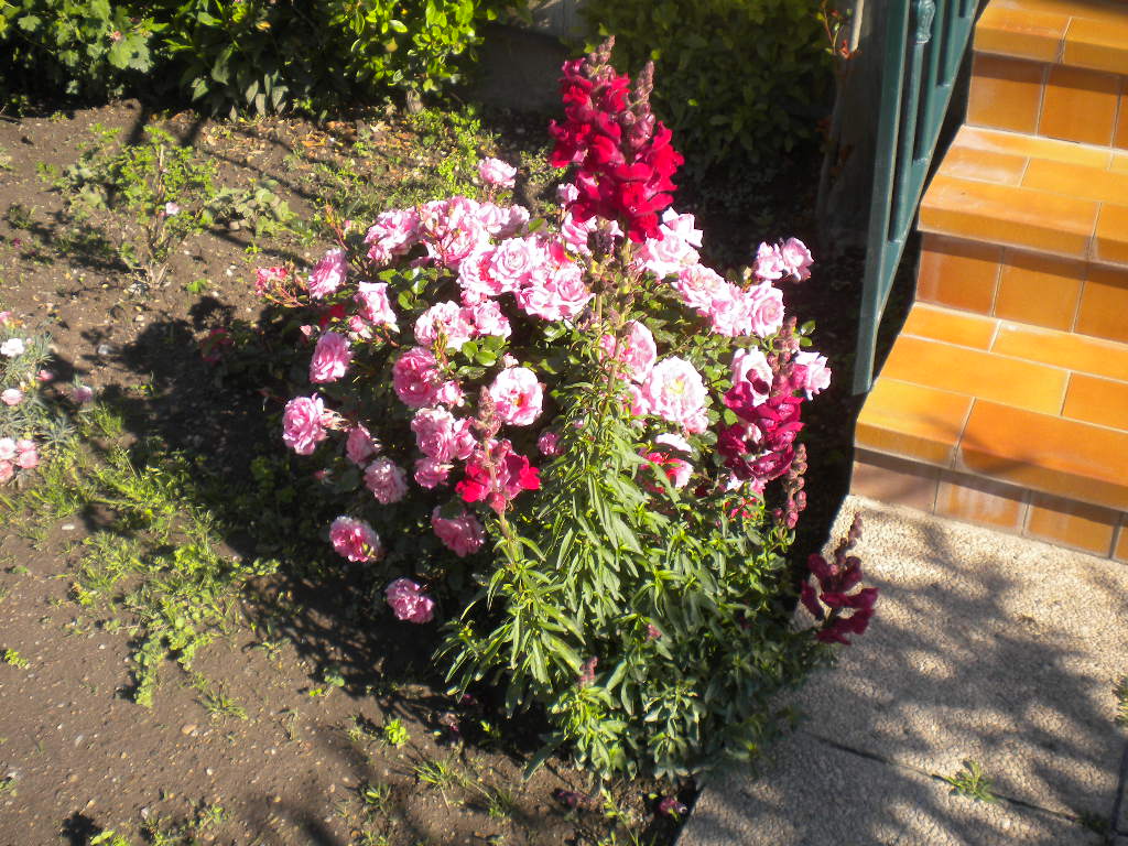 Les rosiers et surtout le rosier Ronsard fleurissent, depuis la bouture il a bien grandit maintenant.