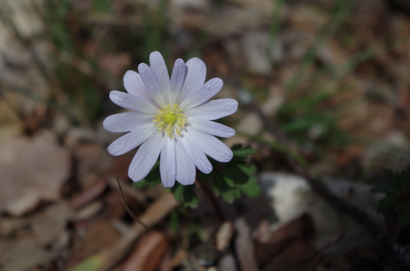 En haut du chemin qui mène chez moi j'avais enlevé pendant l'hiver des branchages et broussailles qui jonchaient le sol à certains endroits . Et là , belle surprise , de petits groupes de fleurs blanches et bleues commencent à y élire domicile .