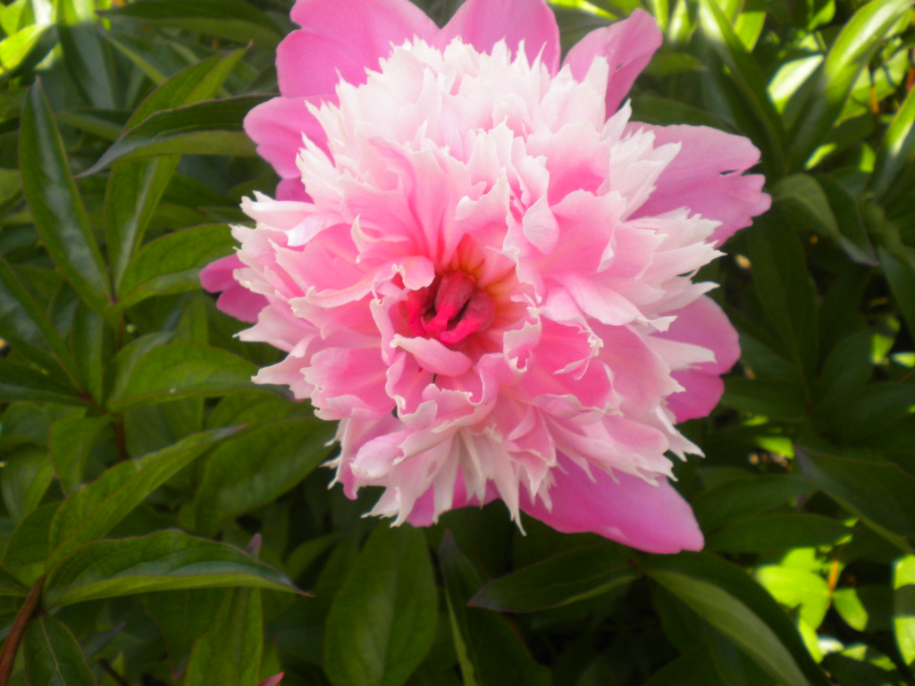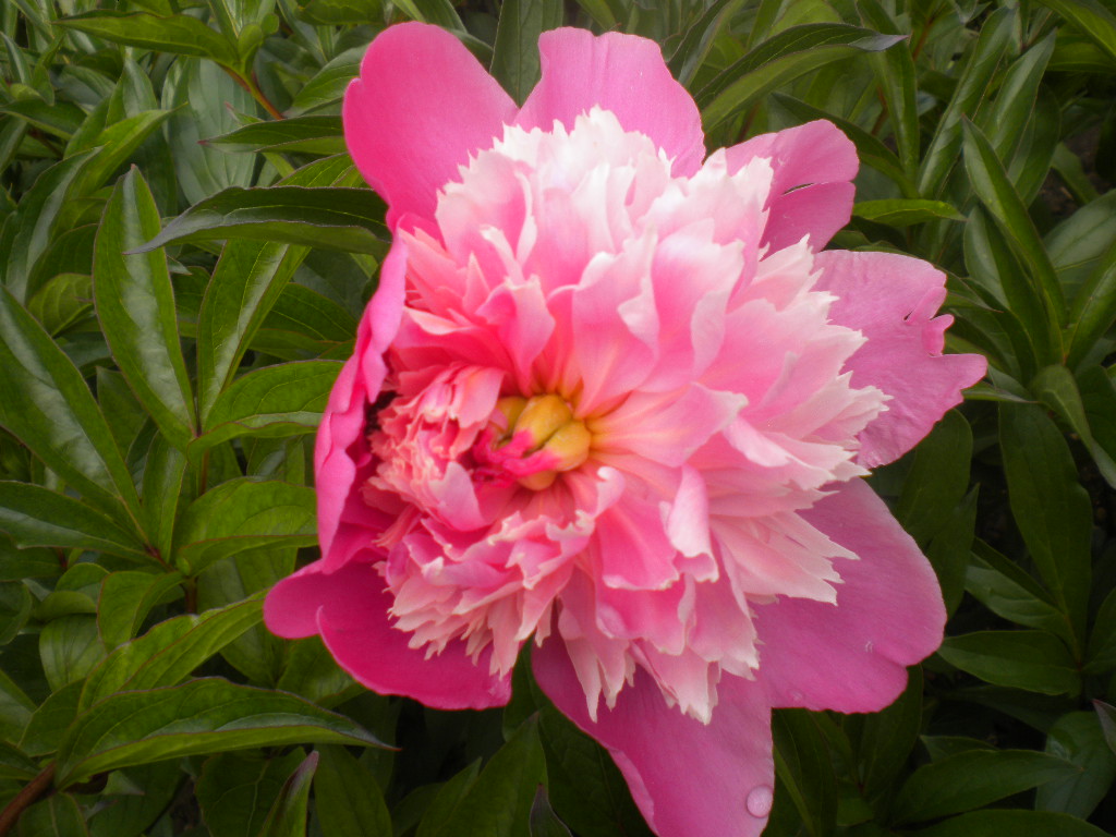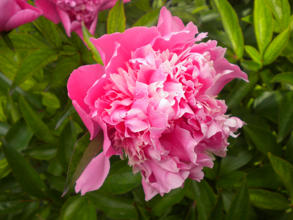 tu es plus en avance que chez moi , la pivoine donne en plein .je n'en ai qu'une , qui vient du balcon de fifille , elle ne se plaisait pas , trop chaud sans doute .et elle aime la pleine terre .