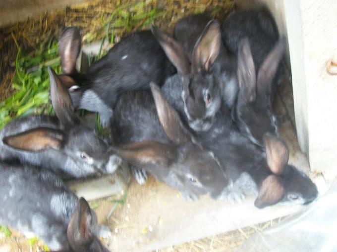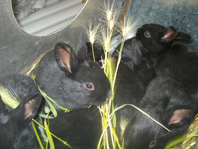 7 "argenté de champagne". Ils naissent noirs et deviennent gris argenté . 6 "rex bleu" un pelage doux! 7 bâtards, croisement des deux races sus-nommées! il sont nourris bio!