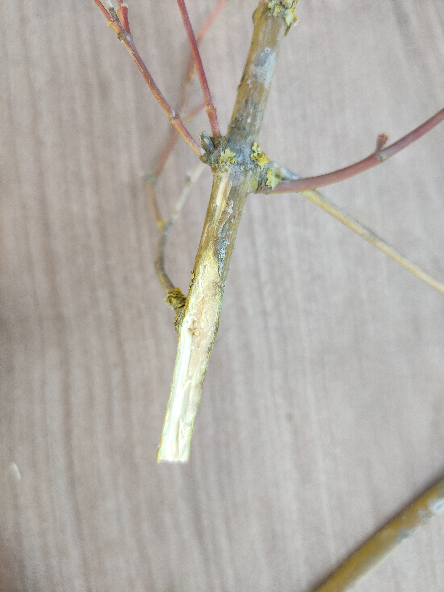 Il y a des brindilles en sève avec des bourgeons rouges , ce sont ceux qui se développeront l’année prochaine, mais ils sont peu nombreux et faibles.