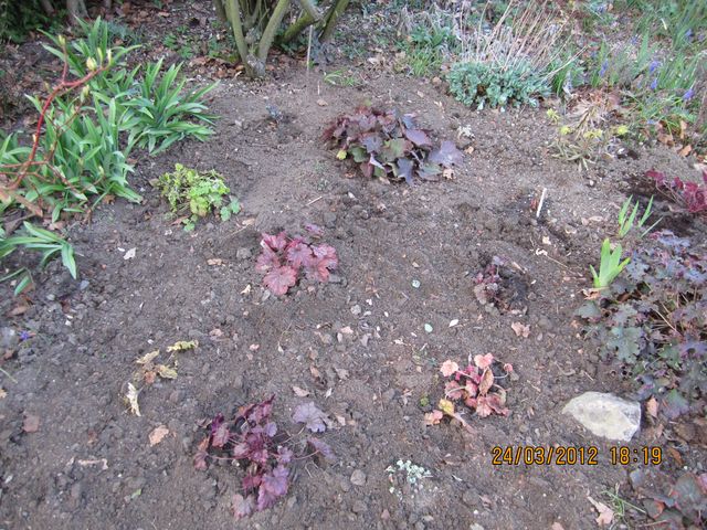 Malgré le brouillard et le froid voici un petit aperçu de mon boulot d'hier : chamboulement volontaire suite aux hécatombes dans le massif ! deux heucheras fichues etc.. énuméré par ailleurs