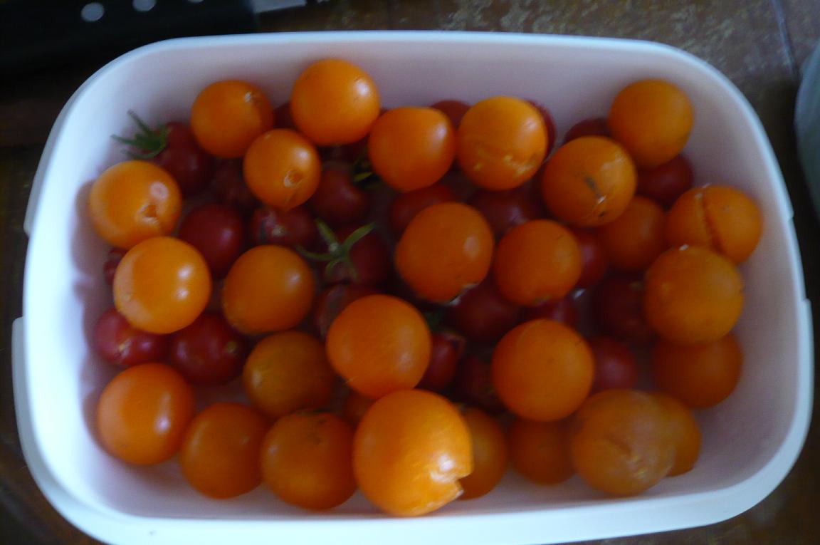 Dis-donc ta récolte de tomates est superbe. :top: Mes plants semés sous abri n'ont pas été contaminés par le mildiou mais l'ont été par d'autres maladies qui n'ont touché que le feuillage. Les fruits sont très beaux. :veryhappy: