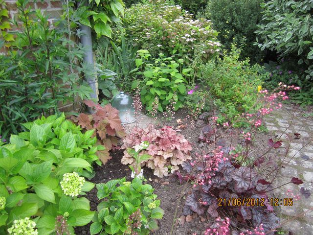 les heucheras et .. l'hydrangea " Annabelle"très bien reparti ces heucheras pour Crystal
