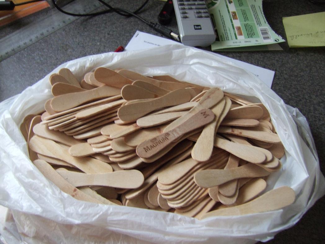 J'ai déjà essayé la méthode avec les batonnets de glace mais je ne recommencerai plus. Le bois est comme une éponge. Il est imprégné d'eau et du coup, on voit difficilement le nom de la variété. Puis, au bout d'un moment, la moisissure s'installe.