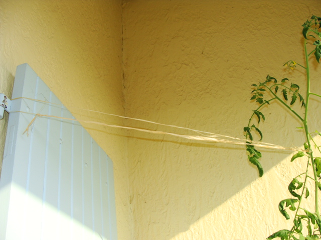 operation attachage de branches au store... PS: c' etait un essai: j'ai repasse la barre du bon cote apres!