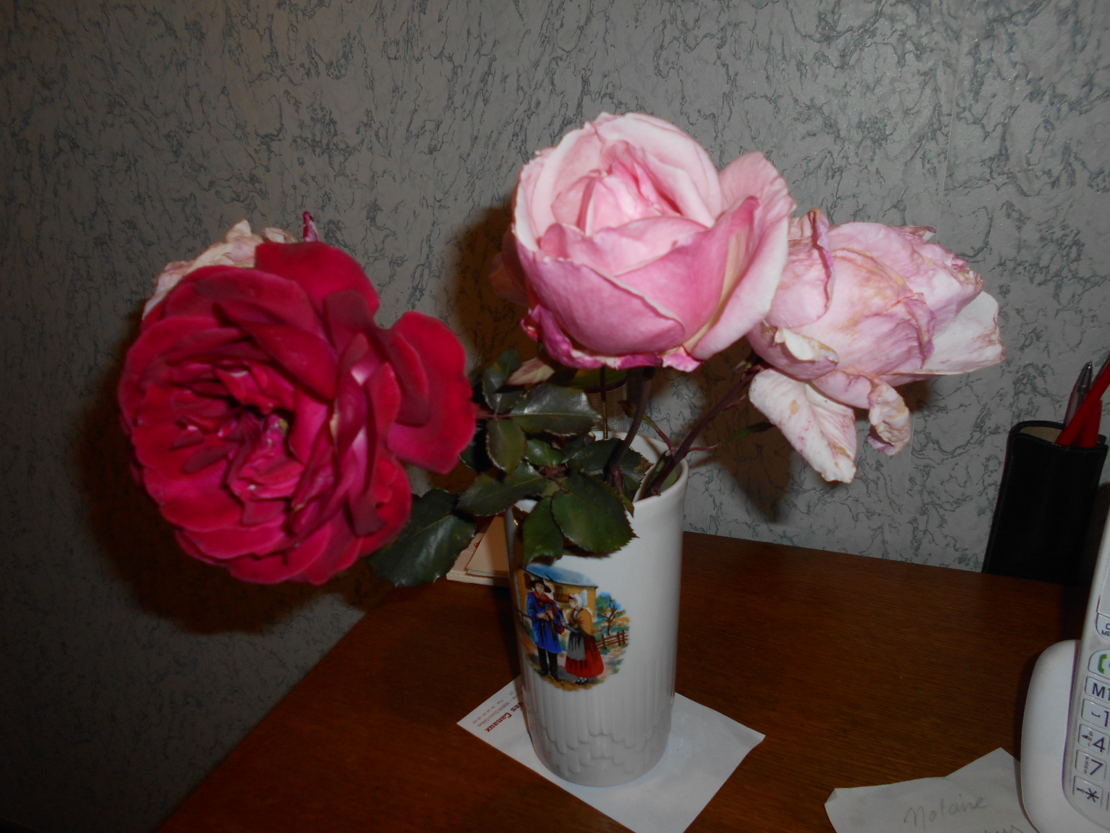 Bonjour à tout le monde et oui il fait pas doux mais chaud 15 ° en rentrant du jardin à midi depuis le vent s'est levé mais il est tout doux a peine un peu .j'ai passé deux heures de 10 H à 12 H pas de vent du tout mais un soleil ardent . Je faisais attention de ne pas exposer mon visage au soleil , moi je prends tout de suite . Alors j'exposais mon postérieur; J'ai fait un bon morceau , il m'en reste encore et le plus en herbe . J'en ai profité au passage pour tailler une dizaine de rosiers et cueilli les roses restantes 4
