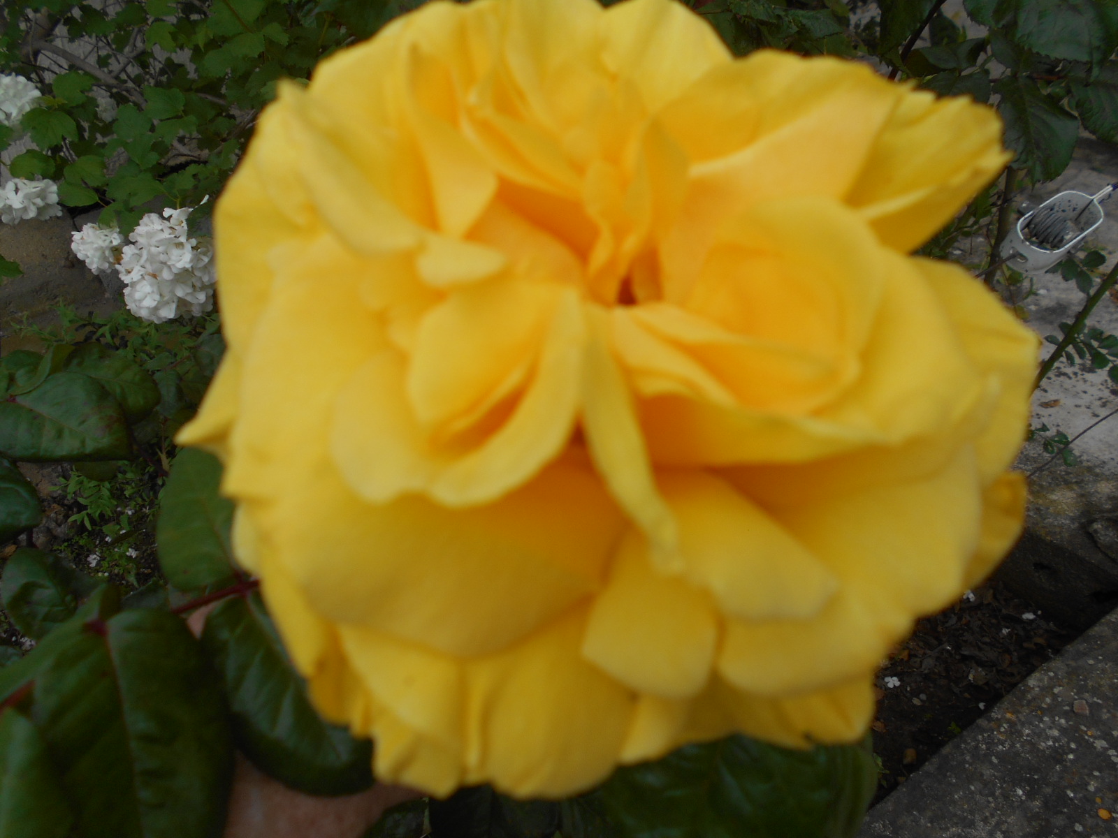 Les rosiers sont grands cette année puisque pas taillés , ils sont bien malmenés . ils sont pas pour longtemps bien recouverts de roses et c'est super ; Je ne suis pas habituée à les voir comme ça .