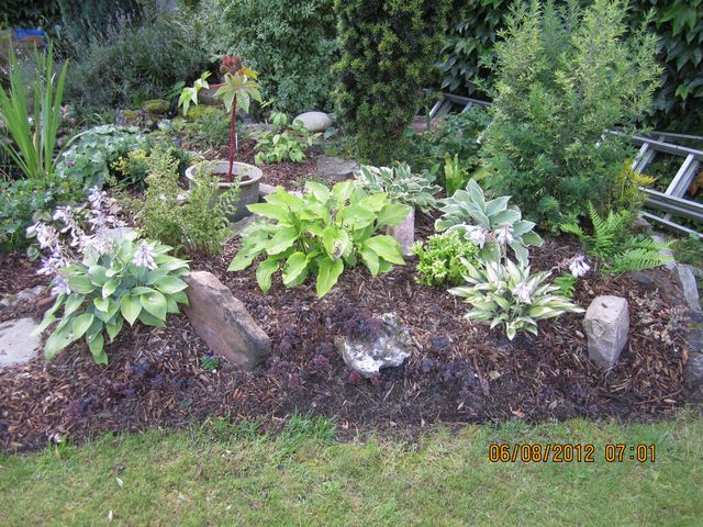 posée à sa place définitive après retrait de l'hosta(bien appréciée par les gourmandes malgré le broyat ) qui, va découvrir un autre horizon !