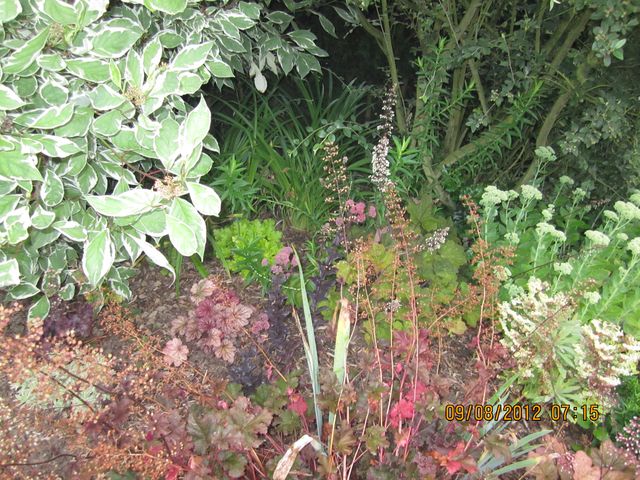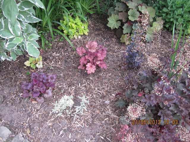 voici ce qu' était ce massif en avril : voici ce qu'il était en juin : et voici ce qu'il est devenu à cause de cette pluie perpétuelle ! tout a pris des proportions ++énormes . j'ai déjà retiré les géraniums, vais donner les asters sous peu ! on ne voit pplus les hellebores !!.. j'ai surtout des heucheres qui se sont épanouies au max malgré la perte de caramel et deux autres qui ont gegé. ce qui estte est superbe ! mais puis je les boutureer, jouer en quinconce sur les couleurs alternance avec euphorbes et sedums divers ?? en supprimant toutes autres plantes !! etc..