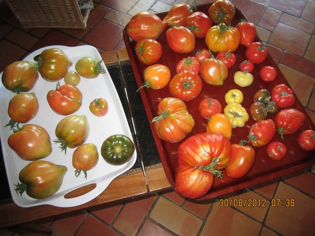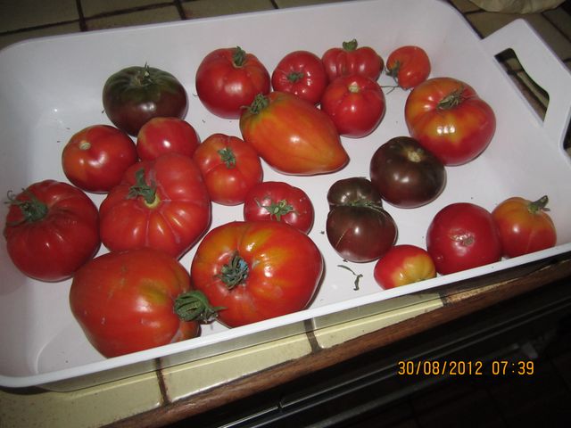 voici nos tomates toutes groupées . Il en manque nous avons degusté , donné il y en a encore en attente !