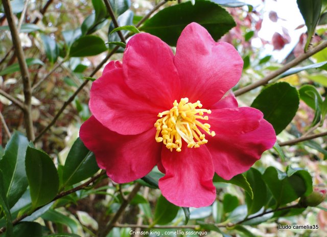 Crimson king , camellia sasanqua à aussi débuté sa floraison.