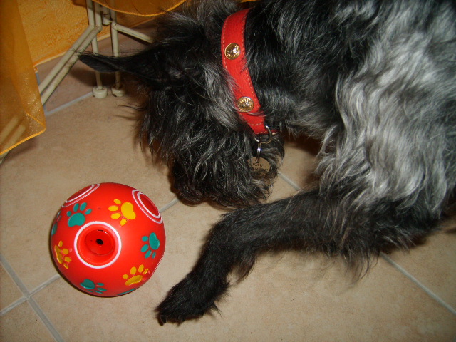 ça à l'air rigolo aussi cette balle à croquettes !!!!!!