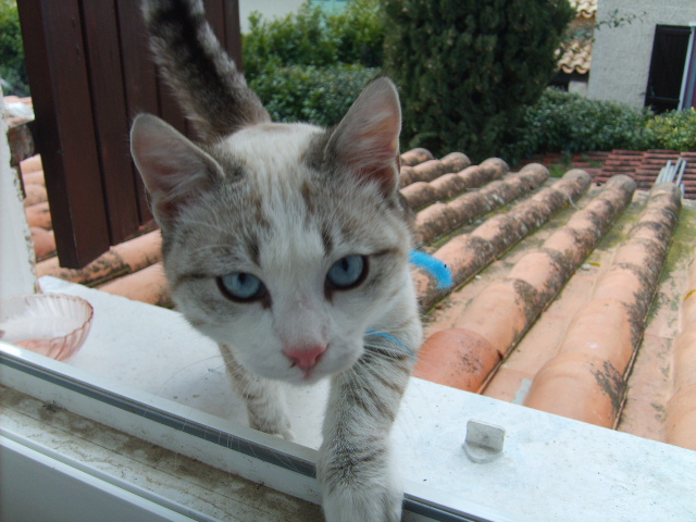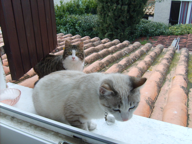 Le pire, est que je pense qu'il est à la voisine qui "devait" recueillir Mimi (soit disant et que Mimi n'a pas voulu!!)!!! car elle a "adopté" le jeune chaton croisé siamois qui vient avec lui,il à environ 5 mois...