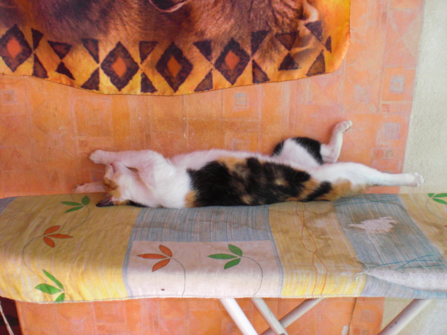 Eh oui moi aussi c'est bien la 1ere fois que je vois ça, mon Gribouille avait trop chaud, d'où cette pose je pense, il fallait bien que j'immortalise ce moment là...