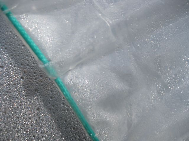 Pour le devant de la serre, il y a un ourlet comment couture, et de n'en passe une grosse ficelle qui permet de tendre la toile, ça marche très bien et c'est très simple à faire.