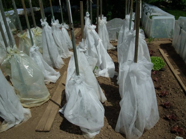 voici une photo des housses pour tomates. Demain j'enlève TOUT