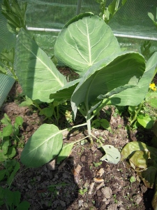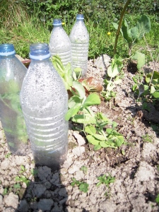 J'ai retiré la protection (bouteille de 5l) dont j'avais couvert un chou cabus il y a 18 jours: la protection a été très efficace puisque le chou qui était rachitique et en perdition a entièrement rempli la bouteille...