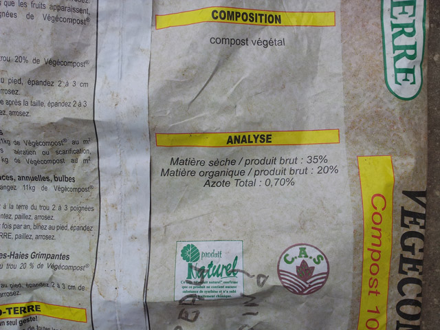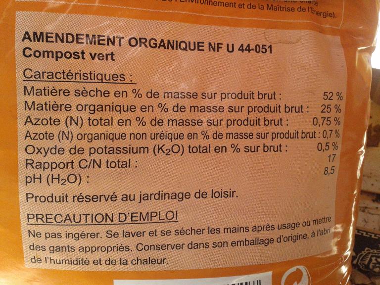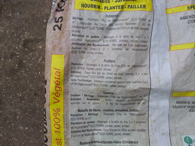 Tu te souviens de la coquille "15Kg/m2"? Et ben je suis tombé sur un sac vide de compost de ma plateforme de compostage, version ensachée... ça va te faire bondir