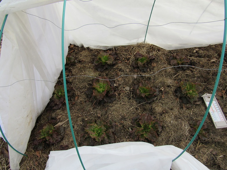 Mis à part cela, le sol dégèle actuellement sur les premiers centimètres et il m’ait possible d'ouvrir le mini tunnel des salades.